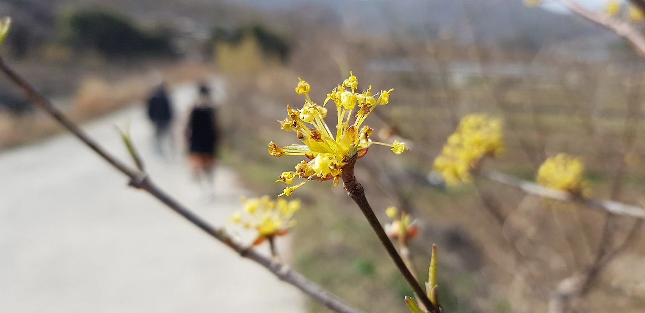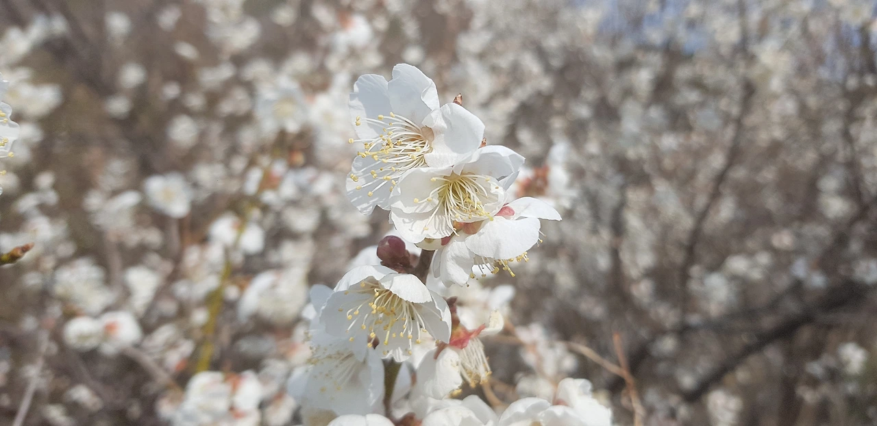 또 다른 날, 인적이 드물어 달리기하기가 좋아서 내가 자주 애용하는 길인데, 이날은 부모님을 모시고 산책을 했다. 활짝 핀 매화.