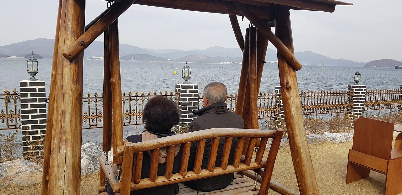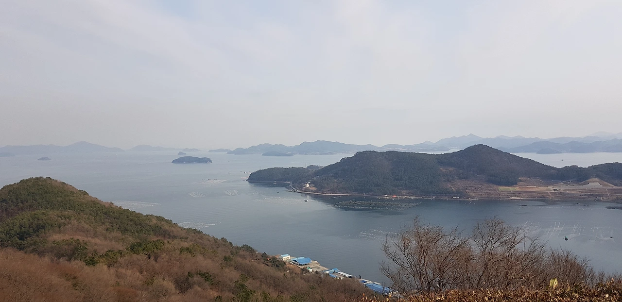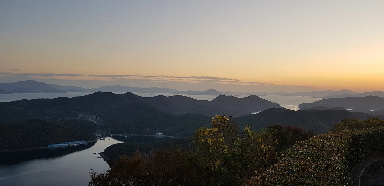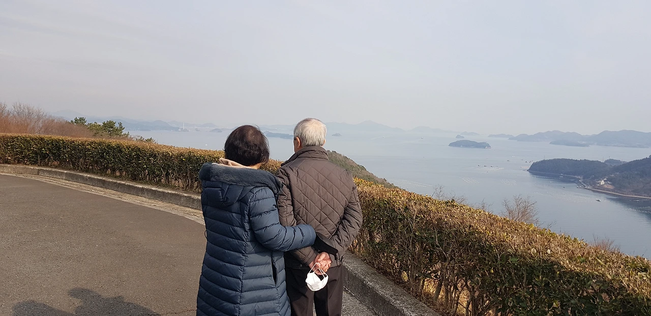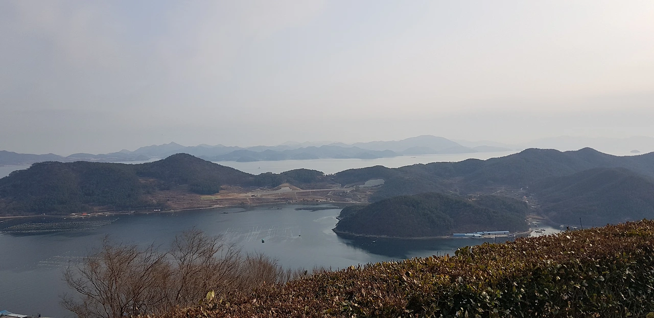 명불허전이란 게 이런 것일지?! 산 정상에 위치해 있어 저 멀리 거가대교, 거제, 통영, 고성이 270도 시야각으로 펼쳐져 보이는데, 정말 속이 후련하고 통쾌한 느낌이 들었다. 조용한 곳이라서 벤치에 앉아서 한동안 멍 때리고 있어도 좋았고, 또 아담한 잔디밭 광장이 있어서 그곳을 사뿐히 걷는 것도 좋았기에 좀 더 일찍 오지 못한 것이 후회스러울 정도였다.