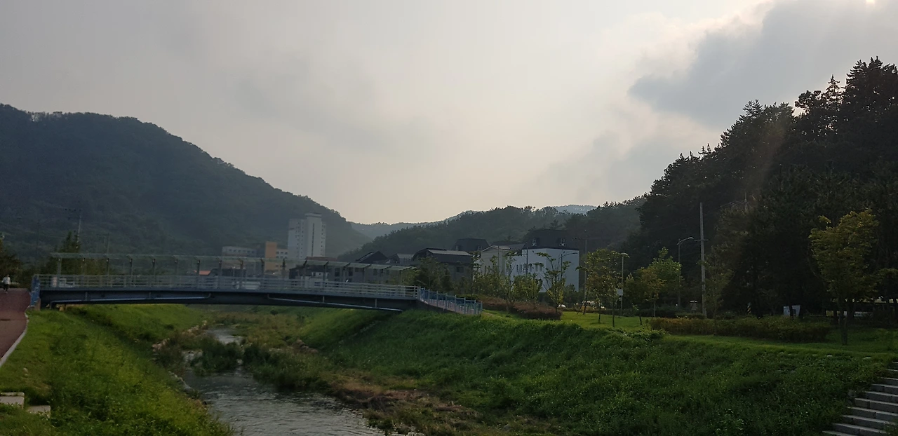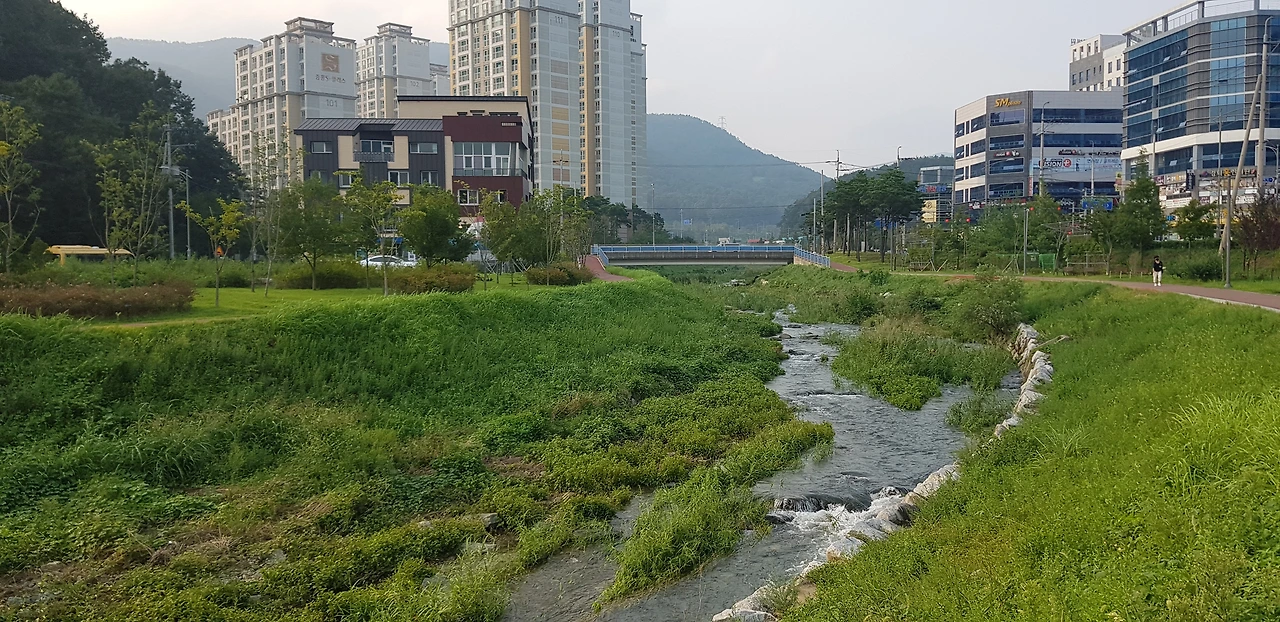 귀향해서 살고 있는 곳 부근의 작은 하천이다. 고양시 창릉천에 비하면 규모가 작긴 하지만, 조깅과 산책을 하기에 손색이 없는 곳이다. 여기서도 학과 청둥오리 등을 비롯하여 여러 새들이 다니며, 특히, 수량이 풍부하여 흘러가는 물소리를 듣고 있으면 마음이 평온해진다.