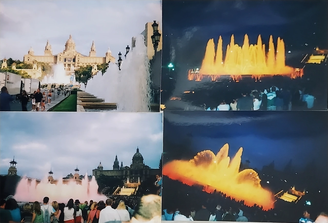 엽서에 있는 곳들을 찾아가서 찍은 사진들. 아래는 바르셀로나 시청 광장에서 펼쳐지는 장엄한 분수쇼. 꽤 인상적이었습니다. 그리고 시청 뒤편으론 바르셀로나 올림픽 주경기장이 위치.