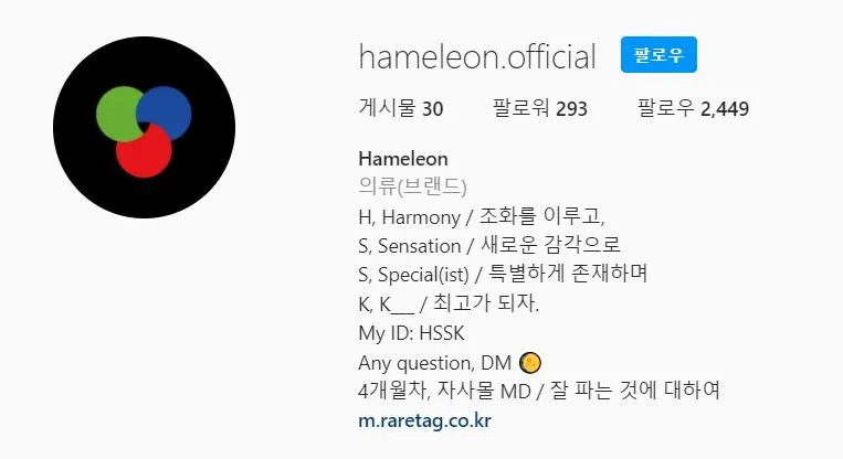 ― 하멜레온(@hameleon.official)이라는 인스타그램 ID도 특이했어.