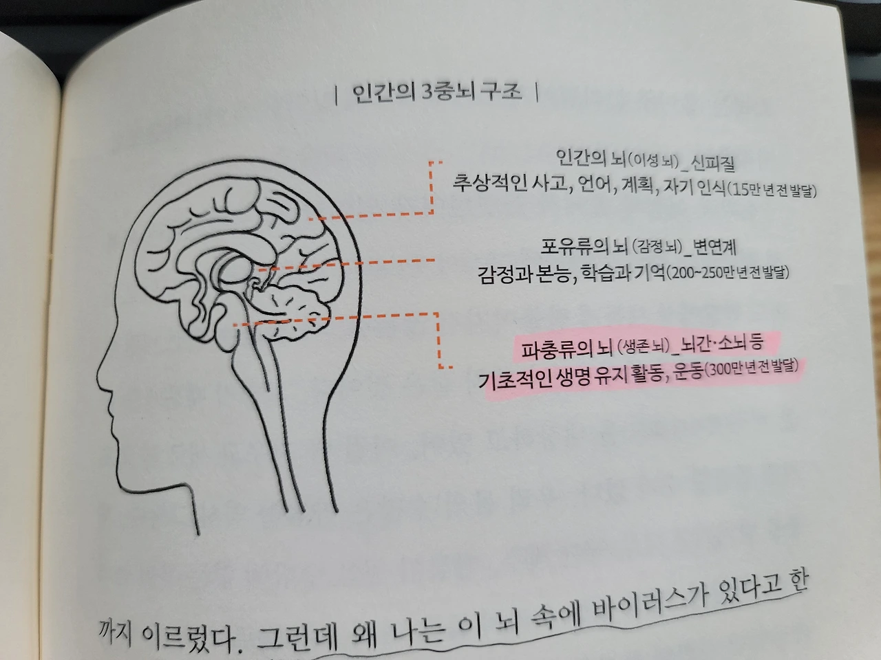 우리 인간의 뇌는 기본적인 호흡과 순환, 운동을 담당하는 파충류의 뇌와 기본적인 감정과 모성애 등 본능, 얼마간의 학습과 기억을 담당하는 포유류의 뇌, 추상적이고 복잡한 생각을 할 수 있고, 고차원적인 생각을 할 수 있는 사람의 뇌로 구성되어 있다. (1970년대 폴 매클린 신경학자가 주장하고, 칼 세이건이 '에덴의 용'에서 언급함)