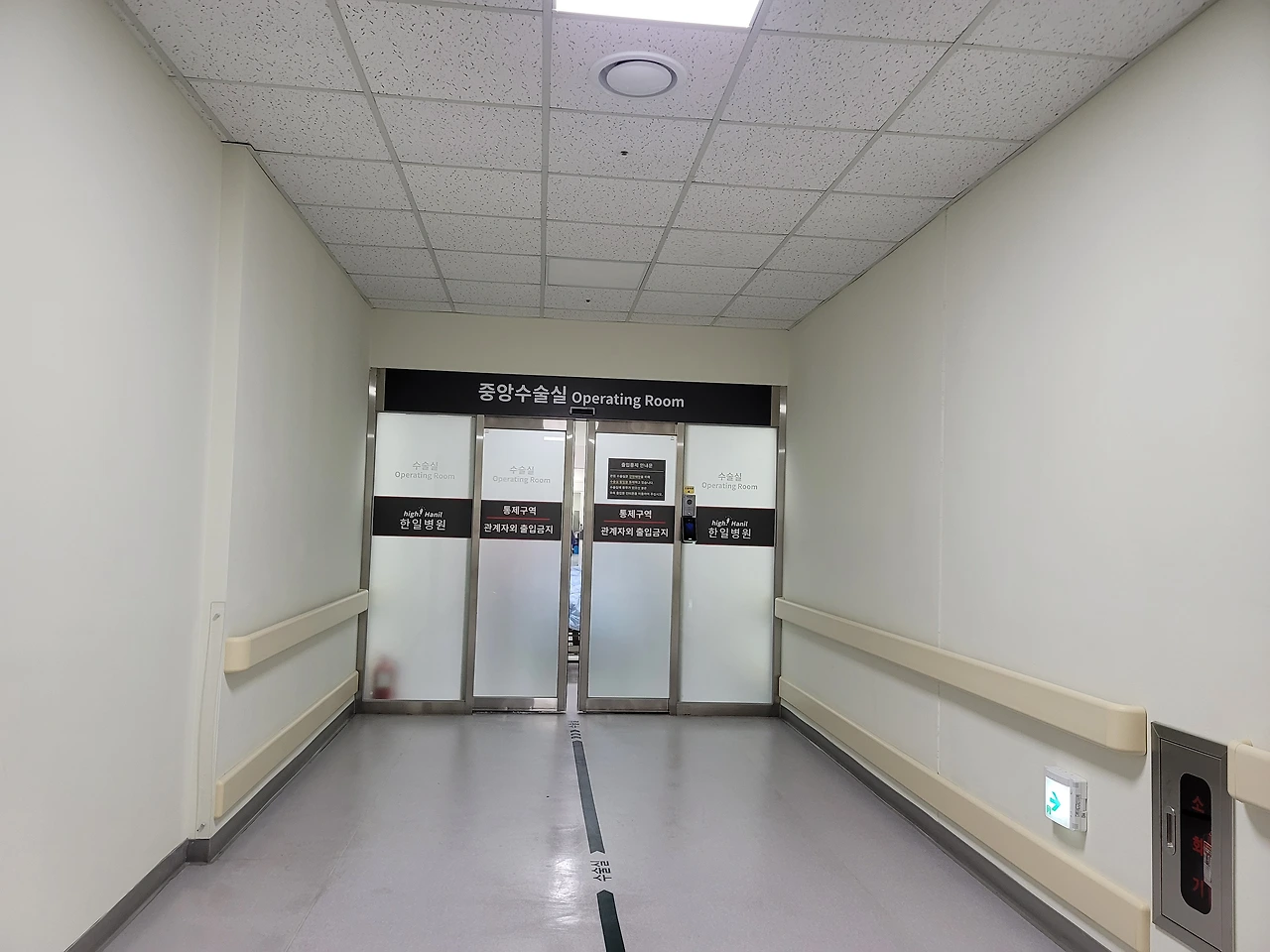 중앙 수술실이다. 이 복도를 침대에 실려 딸은 들어가고 나는 복도 앞 의자에 앉아 절실한 기도를 시작했다. 오른 쪽은 수술 후 나온 담석이다. 노란 황금색으로 나중에는 검게 변했다
