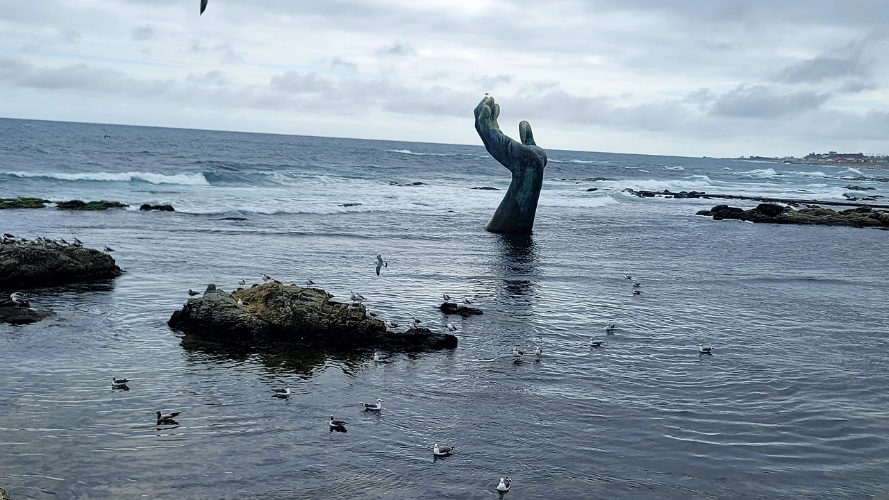 그런데 자세히 보니 손가락 끝에 갈매기가 앉아 있었다. 파도와 새, 그리고 손이 묘하게 조화를 이루고 있었다.