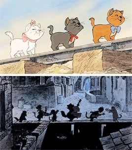 아리스토캣의 이야기가 실화를 바탕으로 만들어졌고 1910년대 프랑스 파리에서 한 상류층 여성이 자신의 모든 재산을 애완 고양이들에게 상속하려고 유언장을 작성했다는 이야기에서 시작되었다. 이 작품이 월트 디즈니가 생전에 마지막으로 관여한 애니메이션이라는 점이다. 1966년 그가 세상을 떠난 이후에도 그의 의도와 감성이 영화에 녹아있어 특유의 따뜻함이 더 깊게 스며든 것 같다.