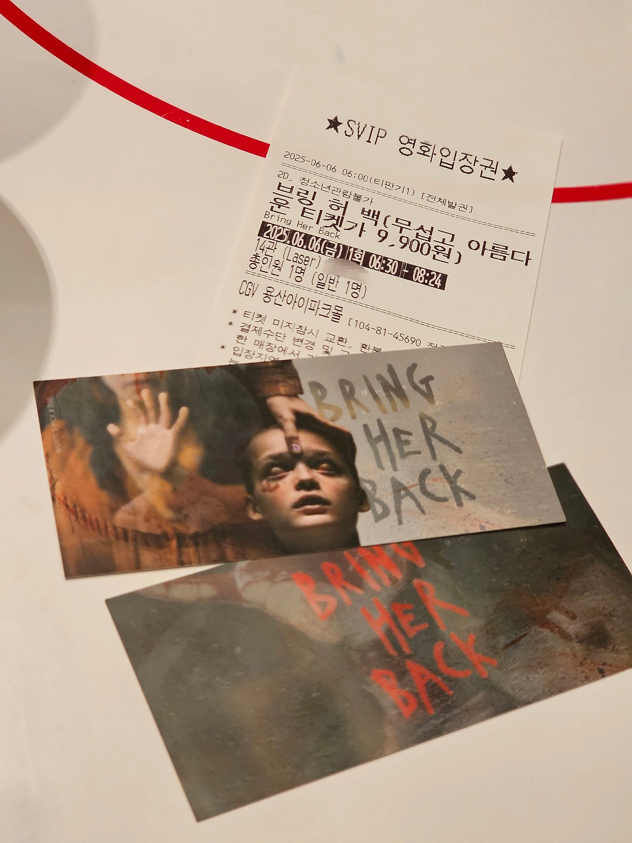 반면, 바로 뒤이어 본 씨너스는 오히려 에너지가 충전될 만큼 열광하며 봤던 걸 보면, 이 영화의 에너지 방향성이 나와 너무 달랐던 것 같다. 전작 톡 투 미도 개인적으로 크게 와닿지 않았다. 이번 작품도 그 연장선에서 아쉬움이 남는다. 감정적, 미학적으로 이 잔혹한 세계관과 나는 거리가 있는 걸지도.