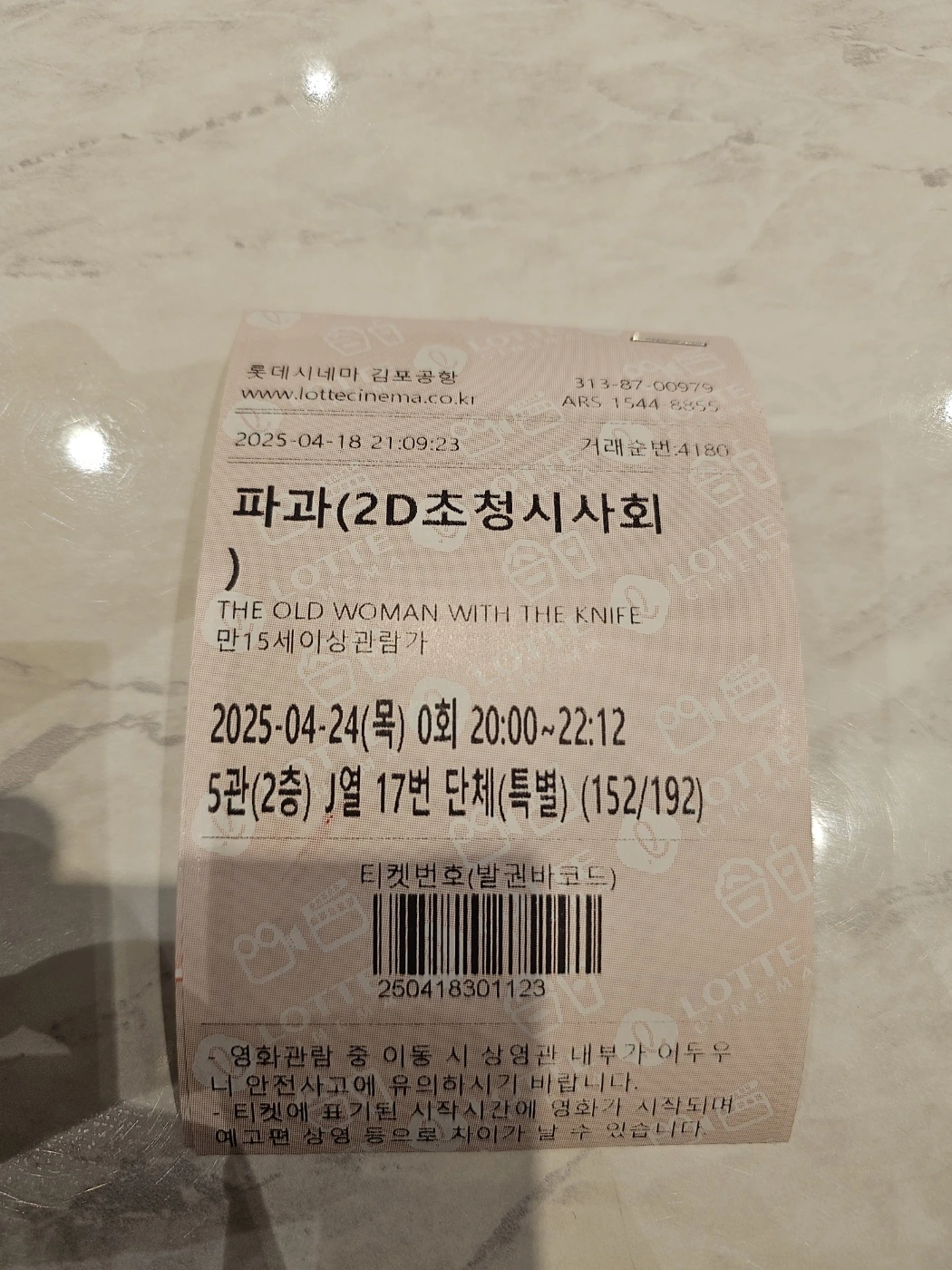롯데시네마 회원 시사회를 통해, 일반 개봉보다 먼저 파과를 보고 왔다.