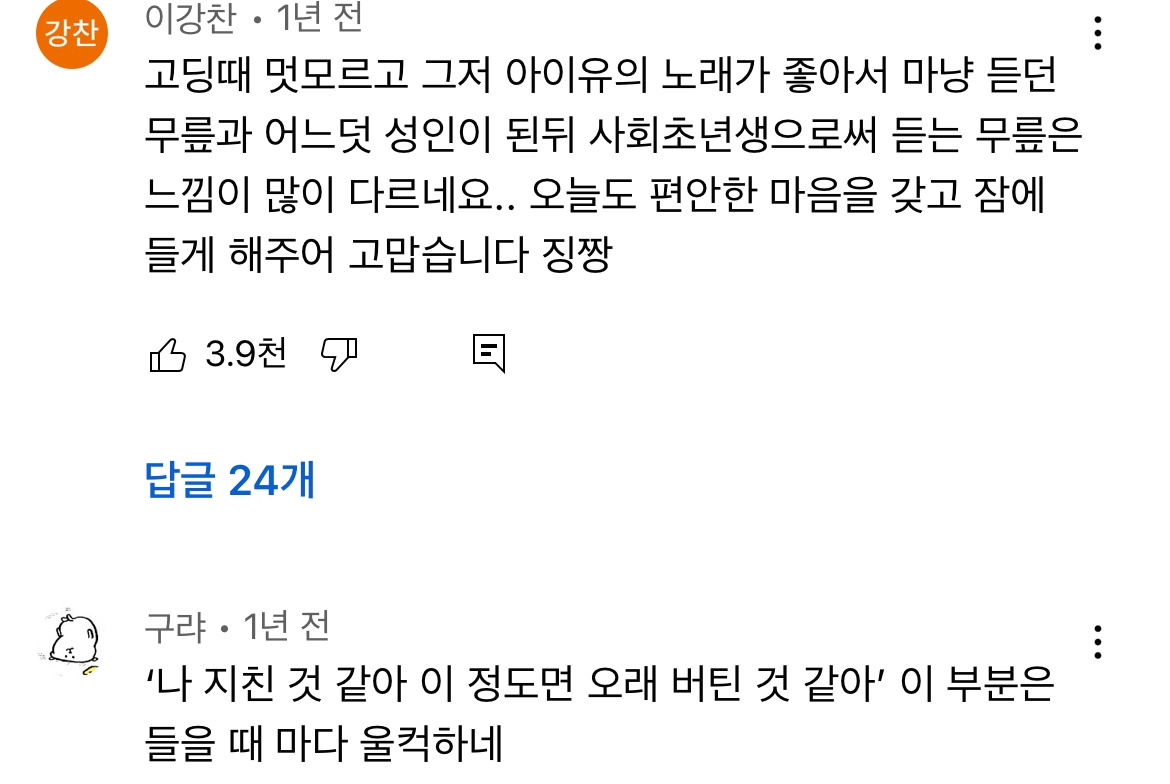 아이유를 통해 그리움, 사랑, 아픔을 배운 사람으로서