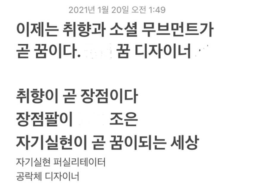 내 마음 속에 있는 걸 꺼내서 꾸준히 말하는 거, 세상에 좋은 거 멋진 거는 많은데 그런 거 말고 내가 좋은 거에 집중하는 거