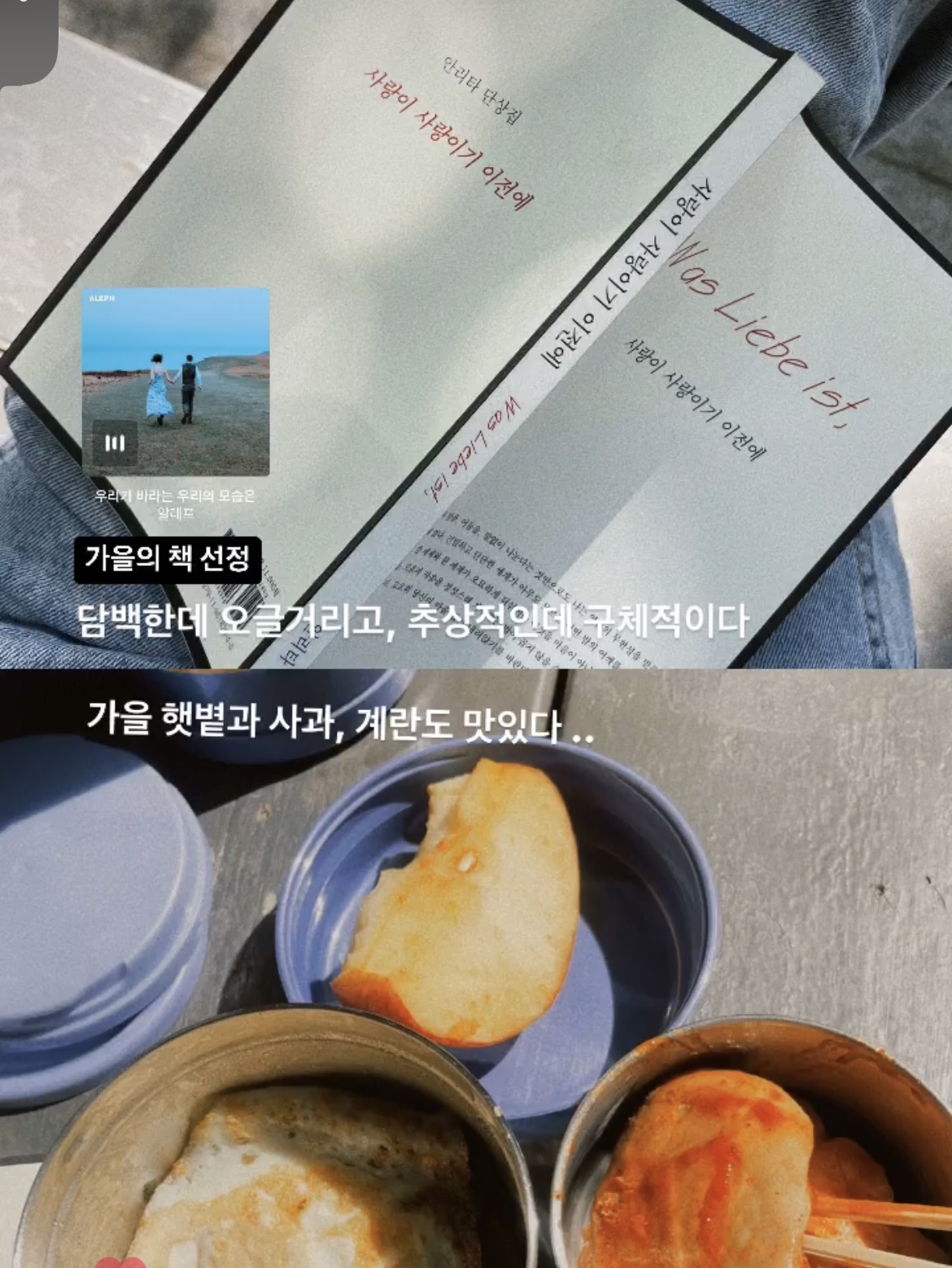 한 번은 시집을 가지고 나갔는데 점심시간 내내 보기엔 아쉬웠고 감성이 도저히 안 따라가 줬다.