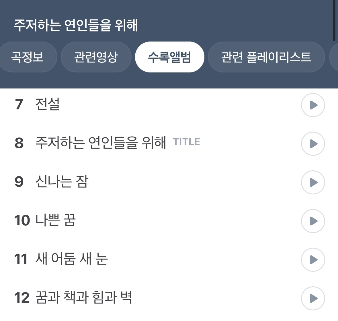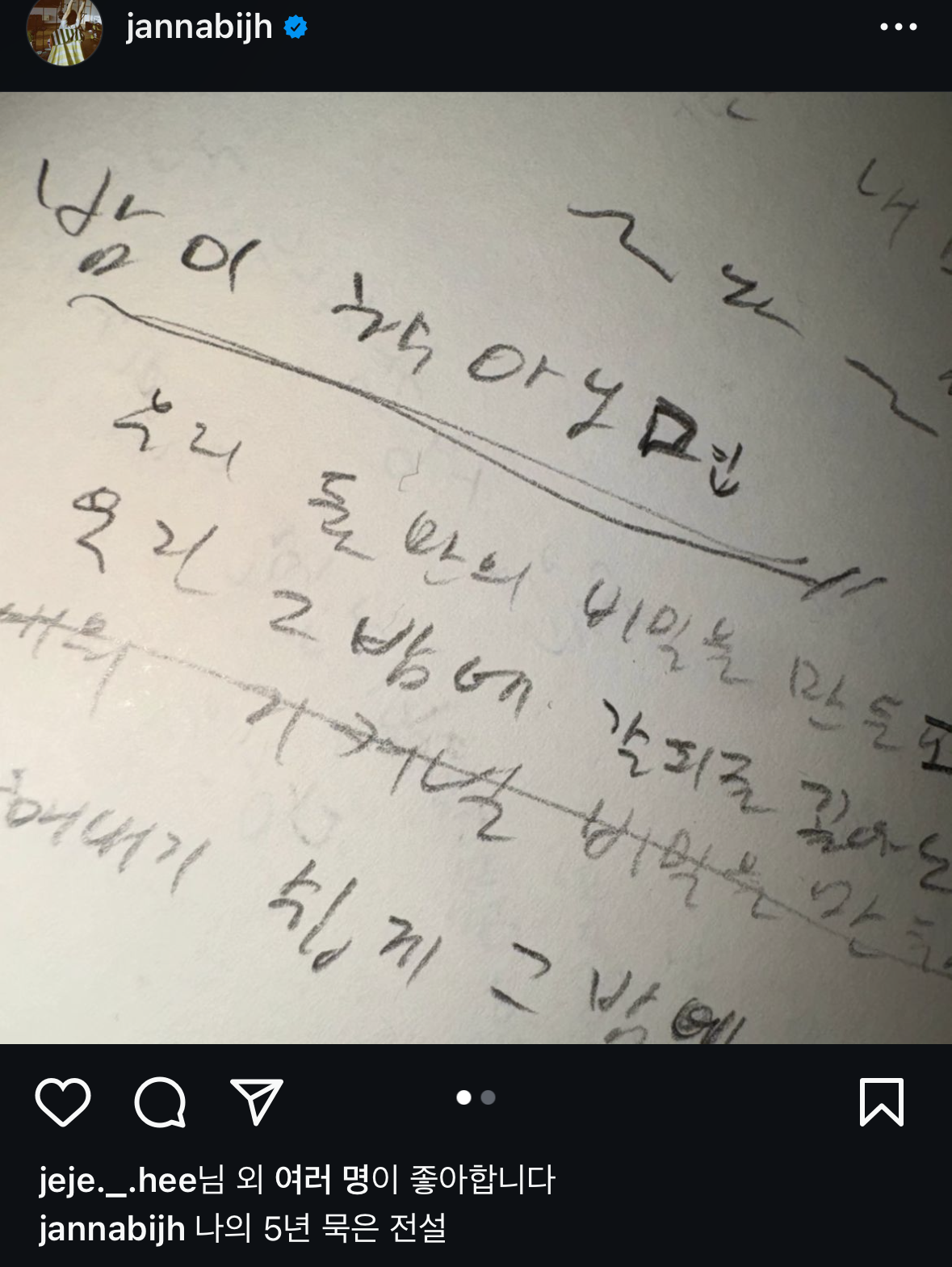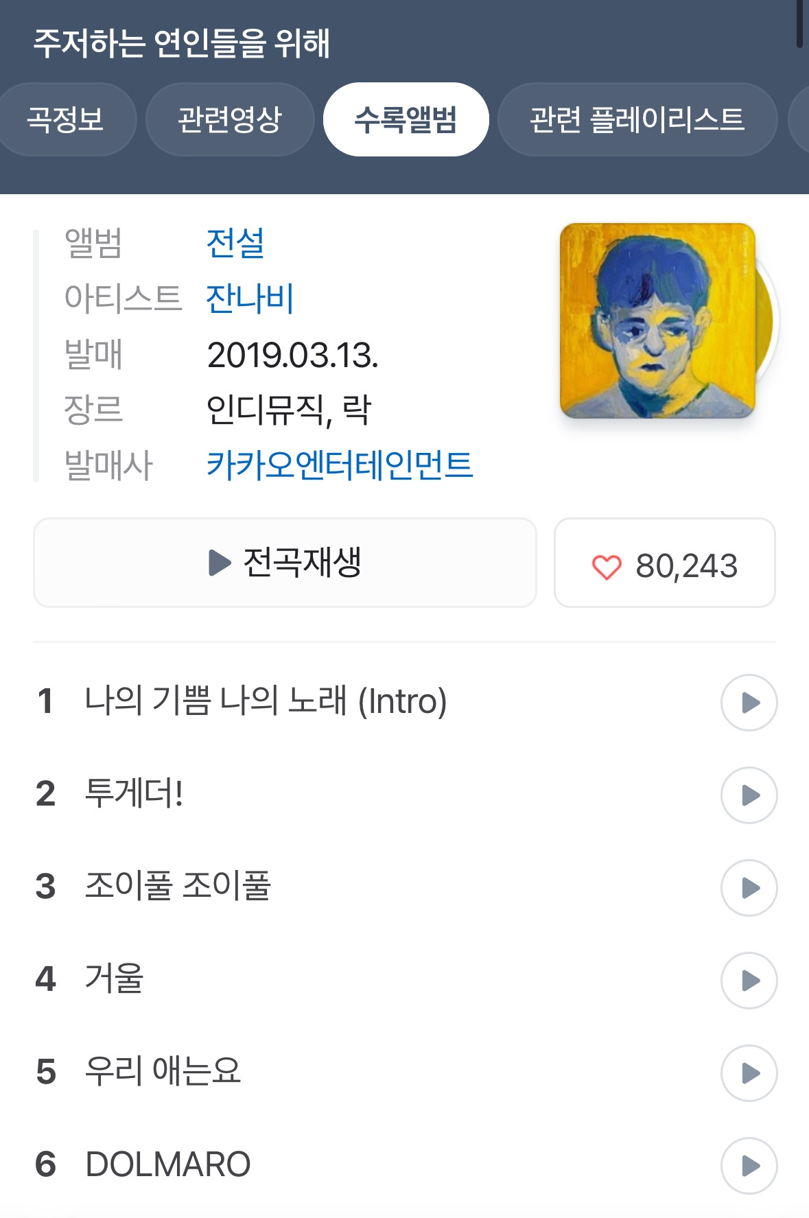 <주저하는 연인들을 위해> 곡이 담긴 ‘전설’ 앨범이 5년이 되었다고 한다. 그 사이 이 노래는 다른 이유로 나와 계속 함께 했다. 처음엔 필이나 느낌으로, 그 다음은 가사로, 그리고 앨범소개글에 담긴 진심까지 나도 내가 이렇게까지 구석구석 좋아하게 될 줄 몰랐다.