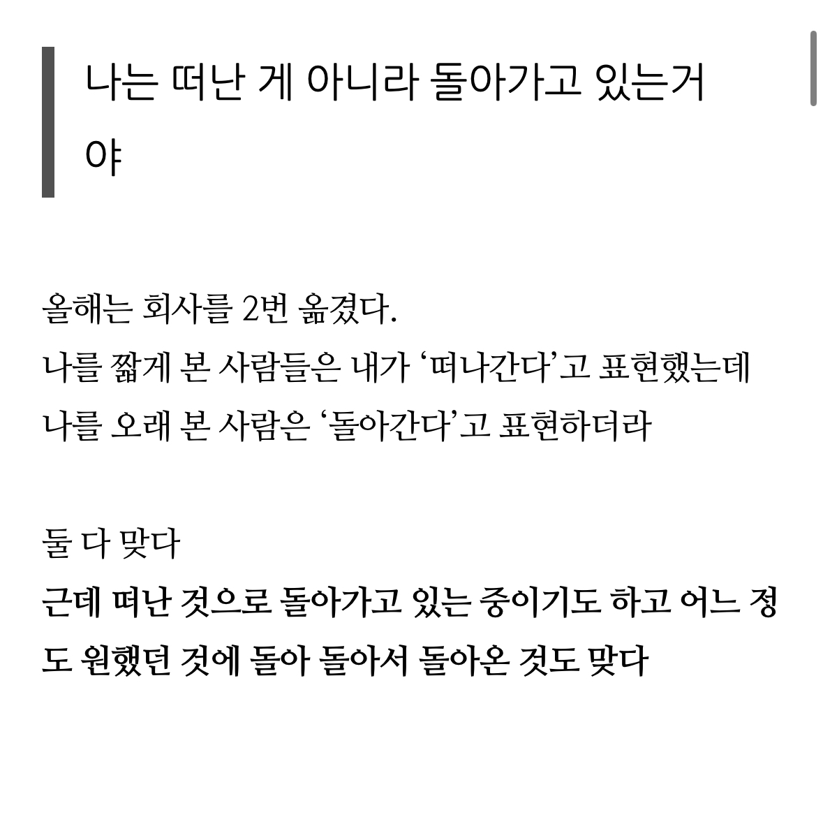 그러다 어느 날 이 노래가 또 카페에서 흘러나오는데 깨달아졌다. ‘언젠가 또 그날이 온대도 우리 서둘러 뒤돌지 말아요‘ 이 가사가 갑자기 들렸다.