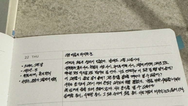 그걸 알게 된 이후부터 일기를 쓰는 일이 얼마나 소중한 일인지 다시 한번 알아차리게 됐다.