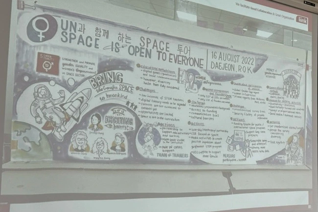 특히 UN에서는 국제회의에서 그래픽 퍼실리테이션 기법을 활용했는데, 이를 통해 여러 국가에서 온 언어가 다른 이들과 공용어인 영어뿐 아니라 그래픽 요소를 더하여 합의의 내용을 보다 시각적으로 잘 구성하였다는 사례가 재밌었습니다.
