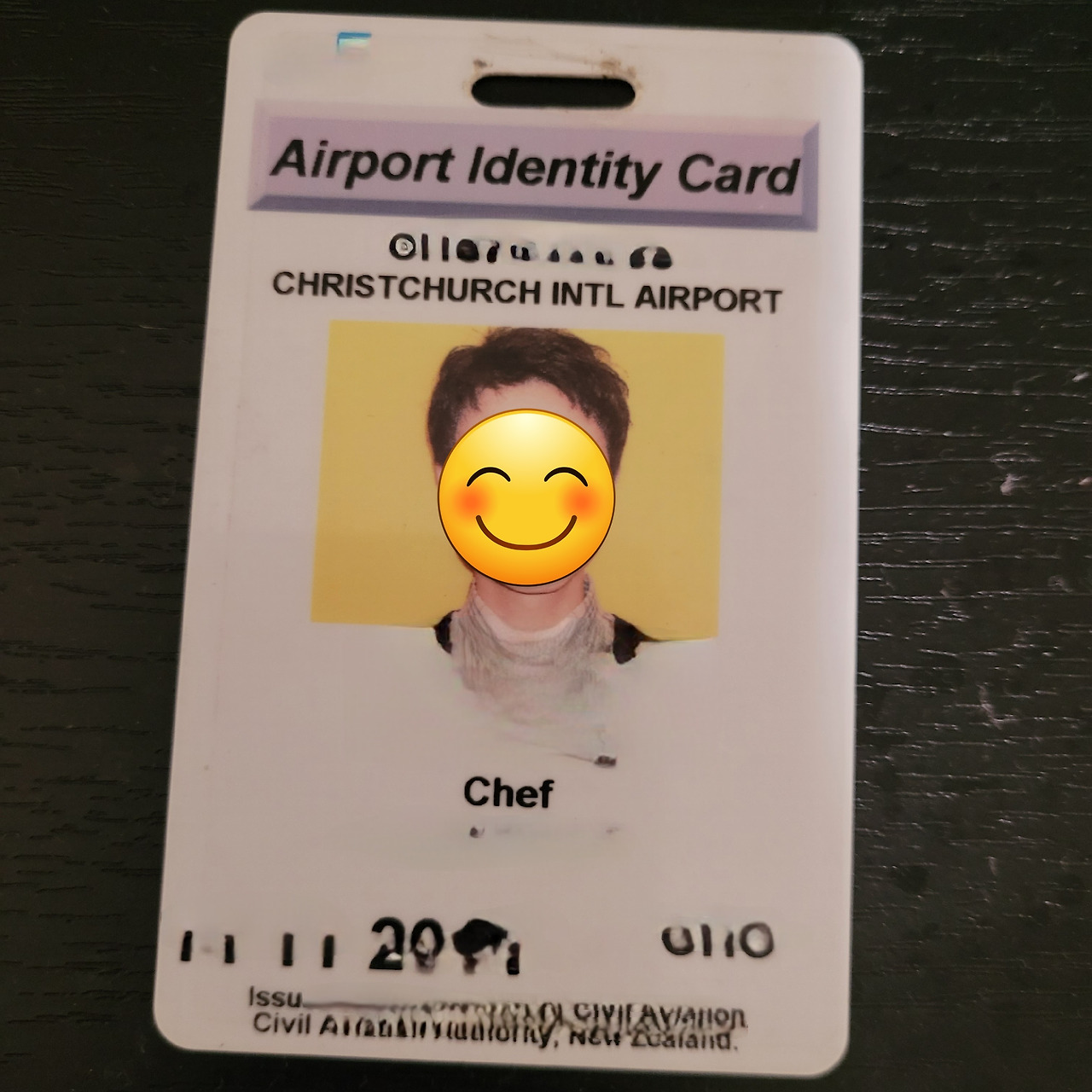 공항 직원 출입증(신분증)다음 주 월요일이 되자, 연락이 와서 공항에서 이태리 음식, 카페음식 을 하면서 열심히 일했다.