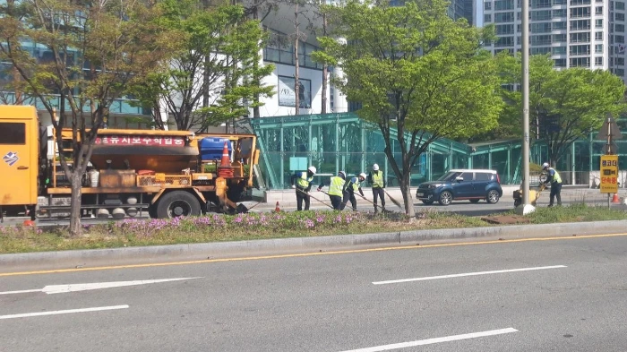 주말 아침 출근길 버스 안. 뜨거운 콘크리트를 쏟아붓고 평평하게 고르면서 도로를 정비하는 사람들 풍경. 신선하면서 나도 뭔가 열심히 하고 싶어지는.