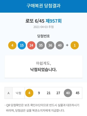 꿈에서 돼지 네 마리를 봐서 복권을 샀다. 신중하게 떠오르는 숫자 6개를 선택했는데 4가 포함된 숫자 두 개만 맞았다.