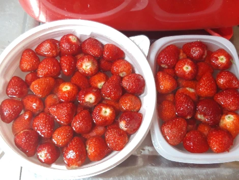 싱싱함이 덜해서 할인가의 절반에 판매 중인 딸기 한 바구니를 사와 식초물에 깨끗이 씻어 믹서에 갈아서 마셨다. 그냥 버려졌음 더없이 아까웠겠다.
