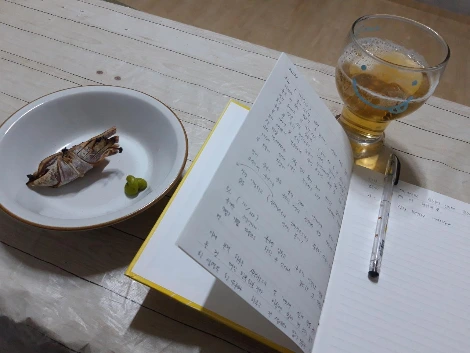 퇴근 후 소박한 술상과 일기 쓰기의 즐거움.