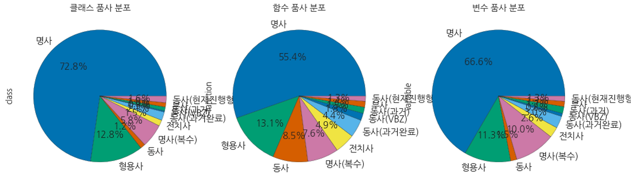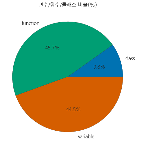 변수의 네이밍 수가 가장 많다고 생각했는데, 예상외로 함수 네이밍수와 비등하게 많음.