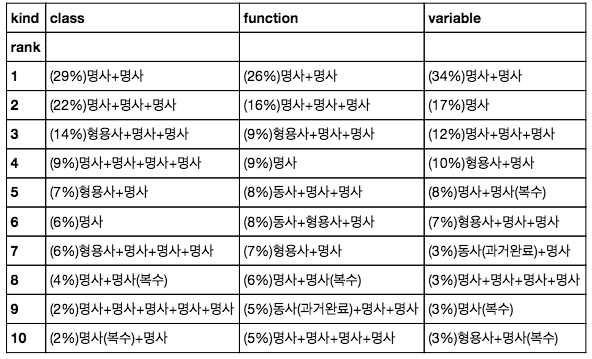 명시적 네이밍 규칙을 찾는 것이 목적인데 나름 적절한 결과를 얻은 듯하다.