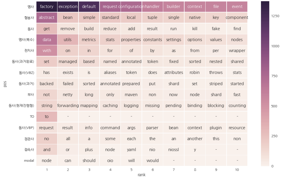 이번 네이밍 데이터 탐색의 목적은 개인적으로 코딩 시 (좋고 나쁨을 떠나) 네이밍 일관성을 위해