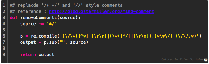 Regular Expression을 적절히 사용하여 주석을 제거하고,