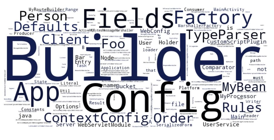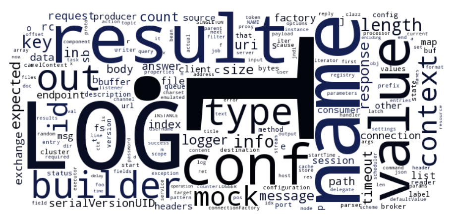 Clone 받은 소스의 총 52,887개 Java파일에서 변수/함수/클래스 네이밍을 추출하였다.
