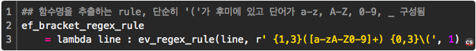 함수 이름 추출 : 단순히 '('로 split을 해서 left token이 함수가 될 수 있는 문자셋으로 구성된 것을 찾음