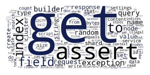 먼저 단순히 단어 빈도(Term Frequency) 기준으로는 Hadoop 소스(좌)와 ElasticSearch 소스(우)의 확인해 보면 Topic이 제대로 나타나지가 않았다.