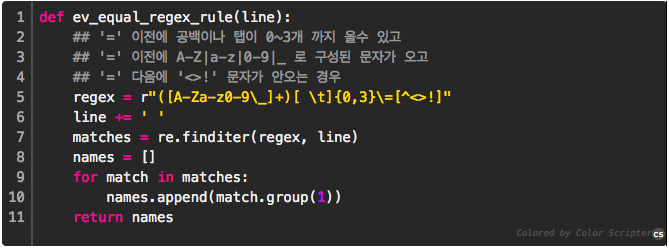 변수 이름 추출 : 변수는 변할 수 있는 값이기 때문에 equal(=) 연산자의 left token을 변수 인식함