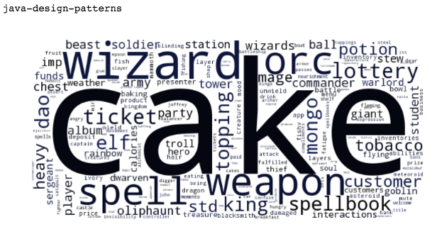 명사 위주의 단어와 함께 design pattern과 관련된 단어들의 많은 사용이 보여진다.