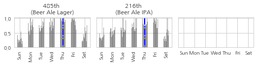 목요일에는 맥주 클러스터의 판매가 눈에 띈다.