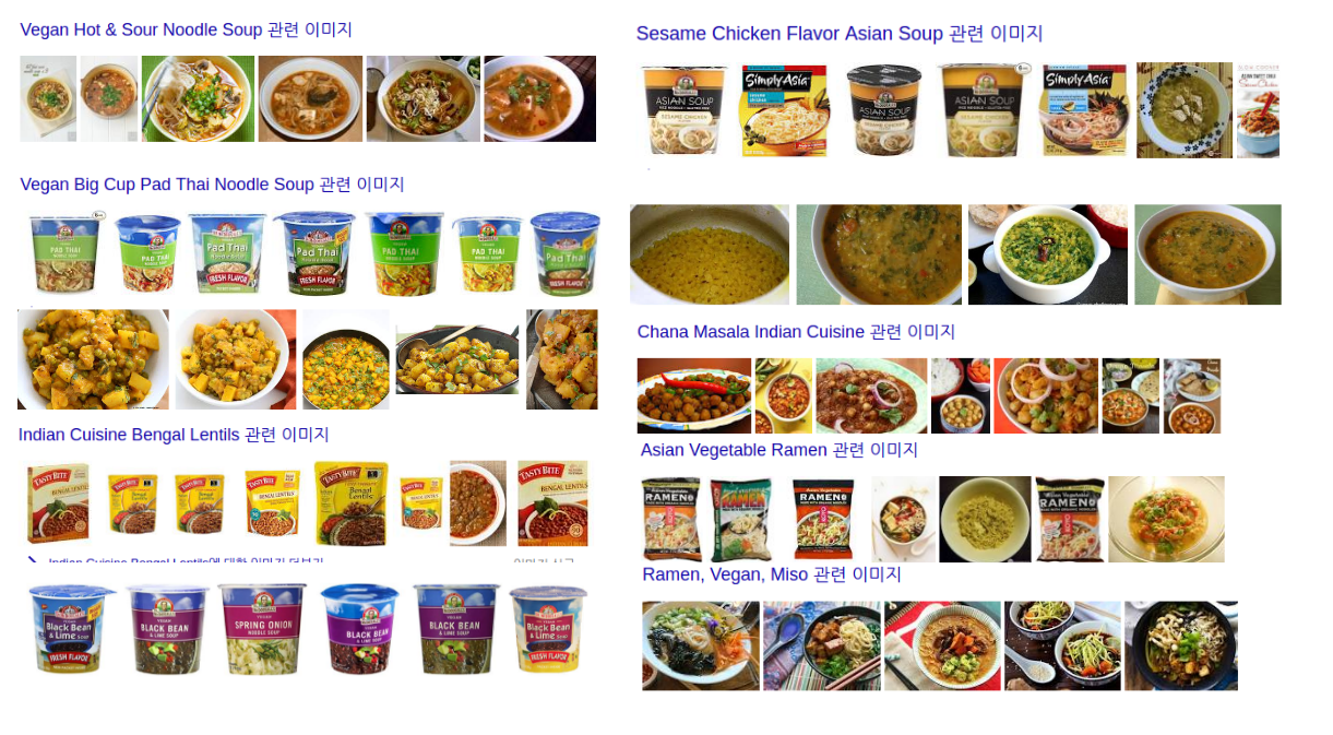 아시안 라면과 카레 등의 유사한 상품이 군집화 되었다.
