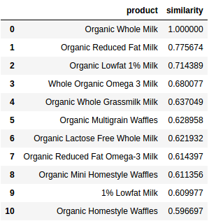 Organic Whole Milk(27845)와 가장 유사한 상품은?