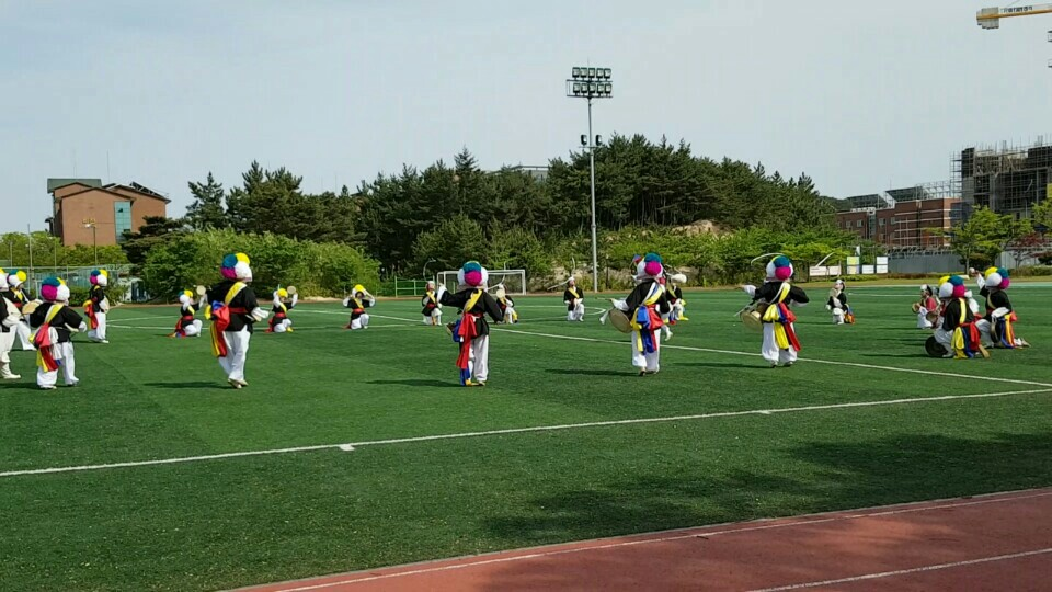 ▲ 지금 하고 있는 한동대 풍물동아리 ‘한풍’에서 학교 체육대회 때 중간에 축하공연을 한 사진입니다. 학교 행사뿐만 아니라 다양한 외부행사에도 많은 공연을 다닌답니다.