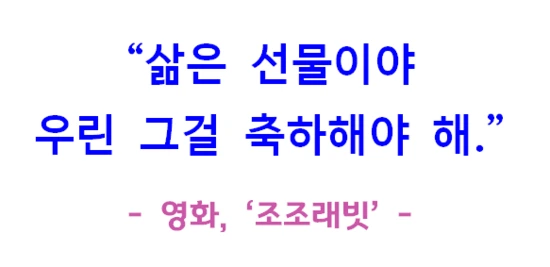 제2차 세계대전과 시리아 내전을 다룬 영화 <조조 래빗>과 <사마에게>는 저에게 뜻밖에 선물을 주었습니다. 카톡 프로필 사진도우중충한 것에서 <조로 래빗>의 대사로 바꾸었어요.^^