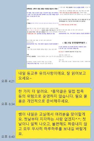 고3 등교 개학 하루 전, 담임반 아이들에게 보낸 빽빽한 등교 안내문 보면 한숨만 나옵니다. 고3 학생들과 담임 교사들이 학교 방역이라는 시험대에 오르게 되었습니다. 너무 부담스럽고 걱정되지만, 교사와 학생들이 서로 믿고 배려하는 것밖에 방법이 없을 것 같아요.