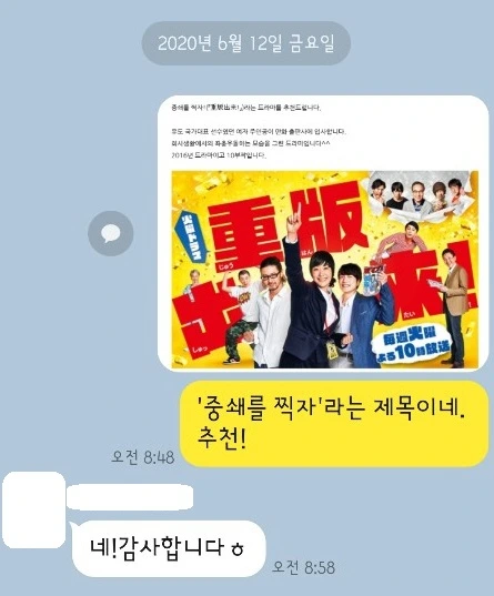 애니메이션 작가가 꿈인 아이에겐 만화 출판사 직원이 주인공인 일본 드라마 <중쇄를 찍자>를, 연기자가 꿈인 아이에겐 2016년 수업에도 활용했던 예능 <배우학교>의 일부를 보내주었어요.