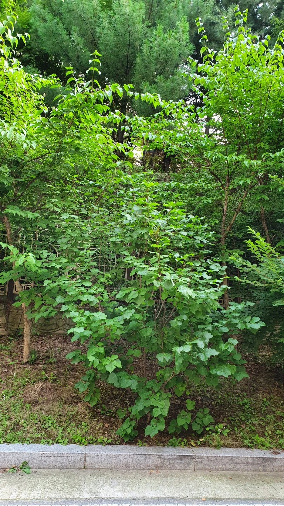 학교 주차장 뒤 화단에 숨어있는