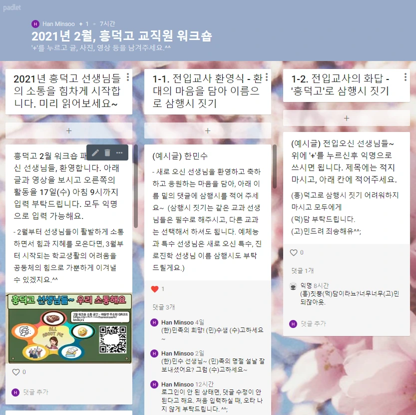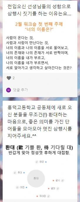 '왜 2월 워크숍을 하는지, 패들렛을 왜 만들었는지, 얼굴도 보지 못한 선생님의 이름으로 삼행시 짓기를 왜 부탁하는지....'
