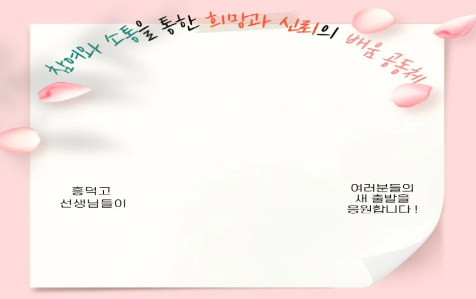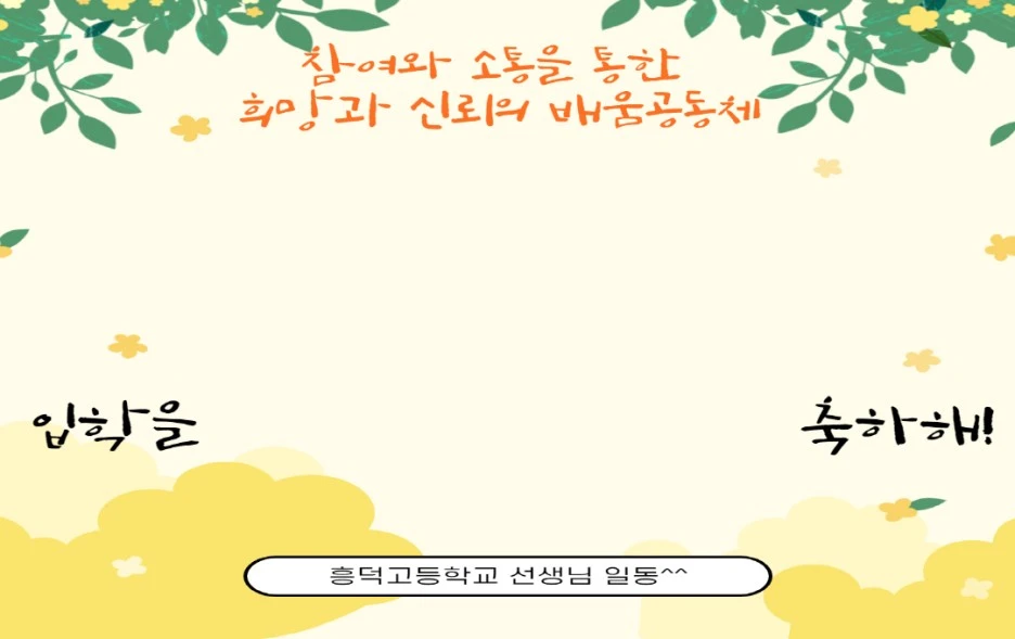 그래서 진짜~ 별거 아니지만, ZOOM 수업 준비 1탄으로 만들어 본 '아이들을 환영하는 가상 배경화면'을 나누고 싶다. 학교 전체 교사가 3월 첫 온라인 수업에서 같은 화면으로 아이들을 맞이하면 좋을 것 같아 만들었다. 교사 단톡방에 '같은 배경화면을 쓰면 어떨까요?'하고 제안했지만, 이것도 내 욕심인 것 같아서 마음에 드는 분들만 자율적으로 쓰시라고 공유해드렸다.