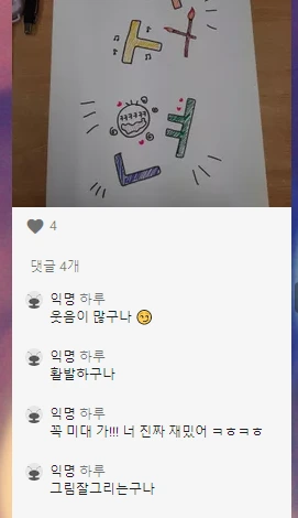 같은 반 친구들의 얼굴도 확실히 못 보고 목소리도 못 들었지만, 아이들은 친구가 정성껏 표현한 이름 타이포그래피 사진을 자신의 스마트폰으로 뚫어지게 보고 나서 댓글을 달았어요. '넌 설마 수학을 좋아하니? 그렇다면 정말 멋지구나', '꼭 미대 가!!! 너 진짜 재밌어 ㅋㅎㅋㅎ'와 같은 댓글이 실시간으로 올라는 것을 보고 있으니까, 정말 선물을 받는 느낌이 들었습니다.
