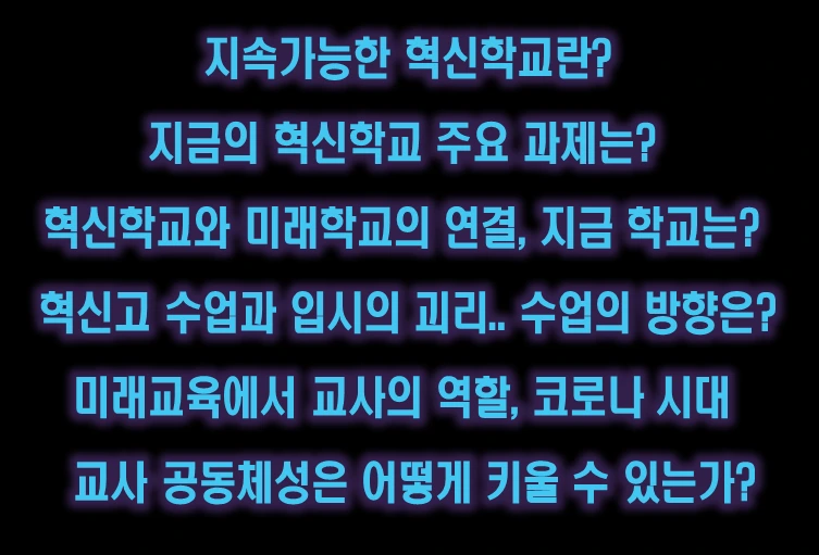 교무, 연구, 학생부처럼 꼭 해야 하는 부서의 업무는 선생님들이 당연하게 생각하고 불만이 거의 없습니다. 하지만 혁신부에서 하는 수업공개와 연구회, 교직원 워크숍과 연수, 학교 평가와 토론회 등은 '굳이 하지 않아도, 혹은 열심히 하지 않아도' 학교는 돌아가기 때문에 업무를 하면서 혁신부장님의 고뇌가 깊어지게 됩니다.