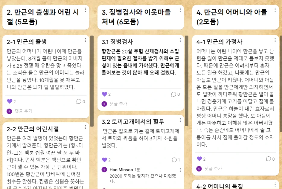 소설의 주인공으로 '문학위키' 만들기를 하면서 <황만근은 이렇게 말했다> 수업을 마무리했습니다. 원래는 진짜 나무위키에 '황만근'에 관한 내용을 아이들이 올리게 하려고 했는데, 생각보다 복잡하고 어려워서 학급별로 패들렛에 가상 나무위키를 만들었네요.^^;