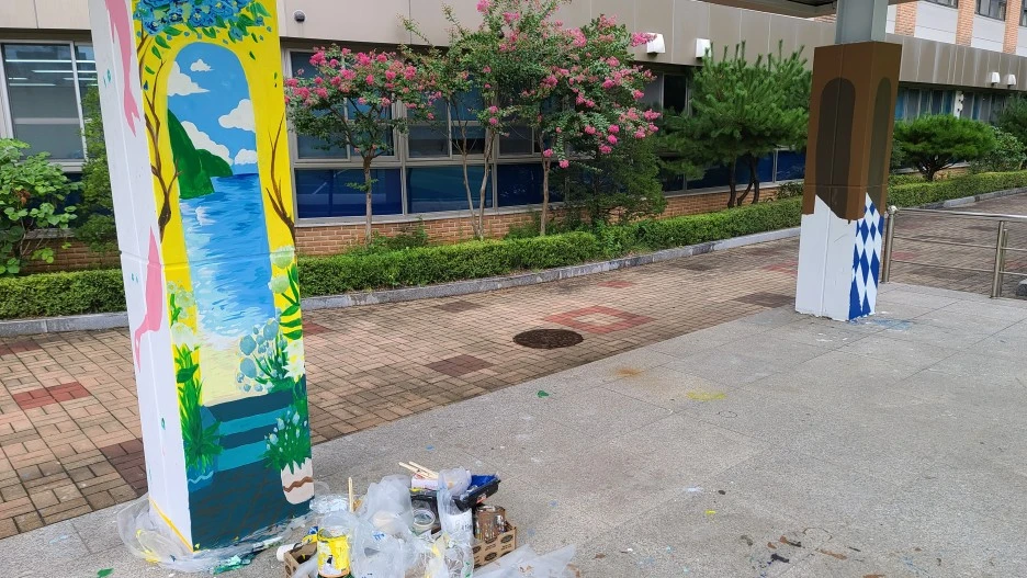 몇 걸음 뒤 구령대 기둥에 어느 동아리가 그렸을까