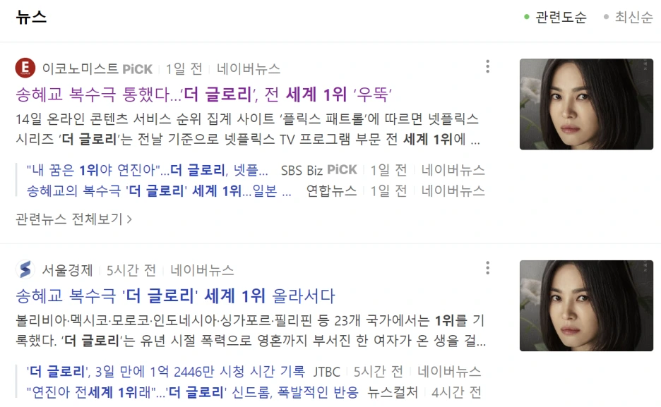 대부분 드라마는 드라마일 뿐이라고 생각하겠지만, 한국의 어두운 이미지는 쉽게 사라지지 않을 것이다. <기생충>까지는 괜찮았다. 이 영화가 다룬 빈부격차 문제는 21세기의 전 세계적인 추세이기 때문에 한국만의 문제는 아니었지만, 여러 세계 1위 드라마를 거치면서 점점 위험해지더니, 특히 <더 글로리>의 '고데기 폭력'은 좀비보다 무서운 트라우마를 시청자들에게 각인시켰다.