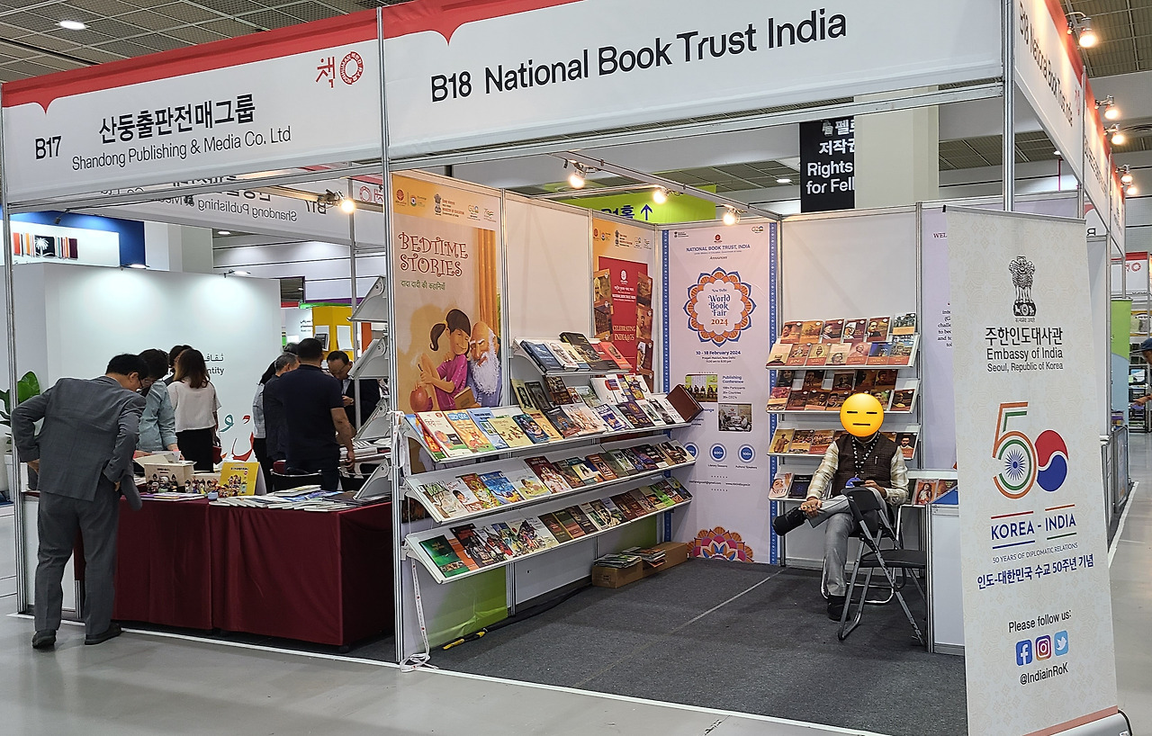 우두커니 부스를 지키고 있던 인도 아저씨의 꼰 다리가