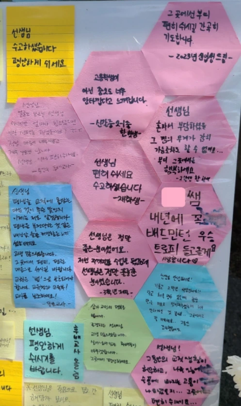선생님을 기억하고 그리워하는 마음이 담긴 쪽지들이