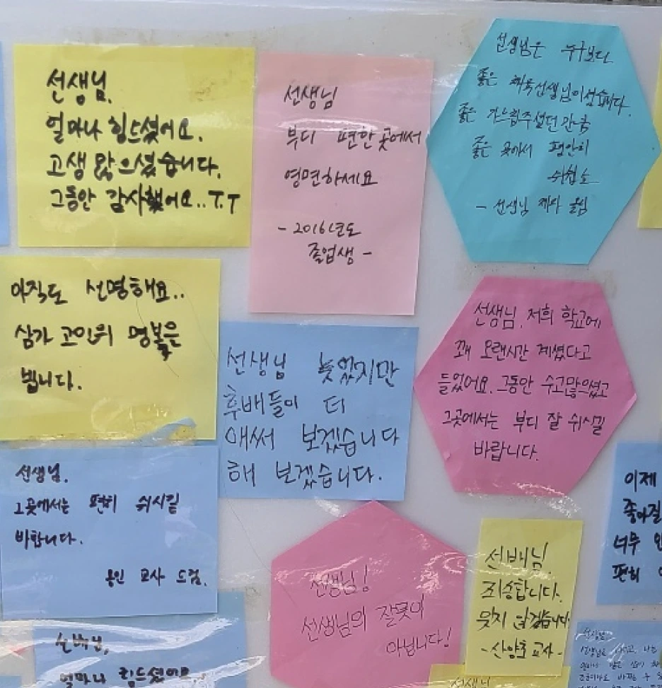 다른 후배 교사가 먼저 적고 간 마음으로 대신 전합니다.